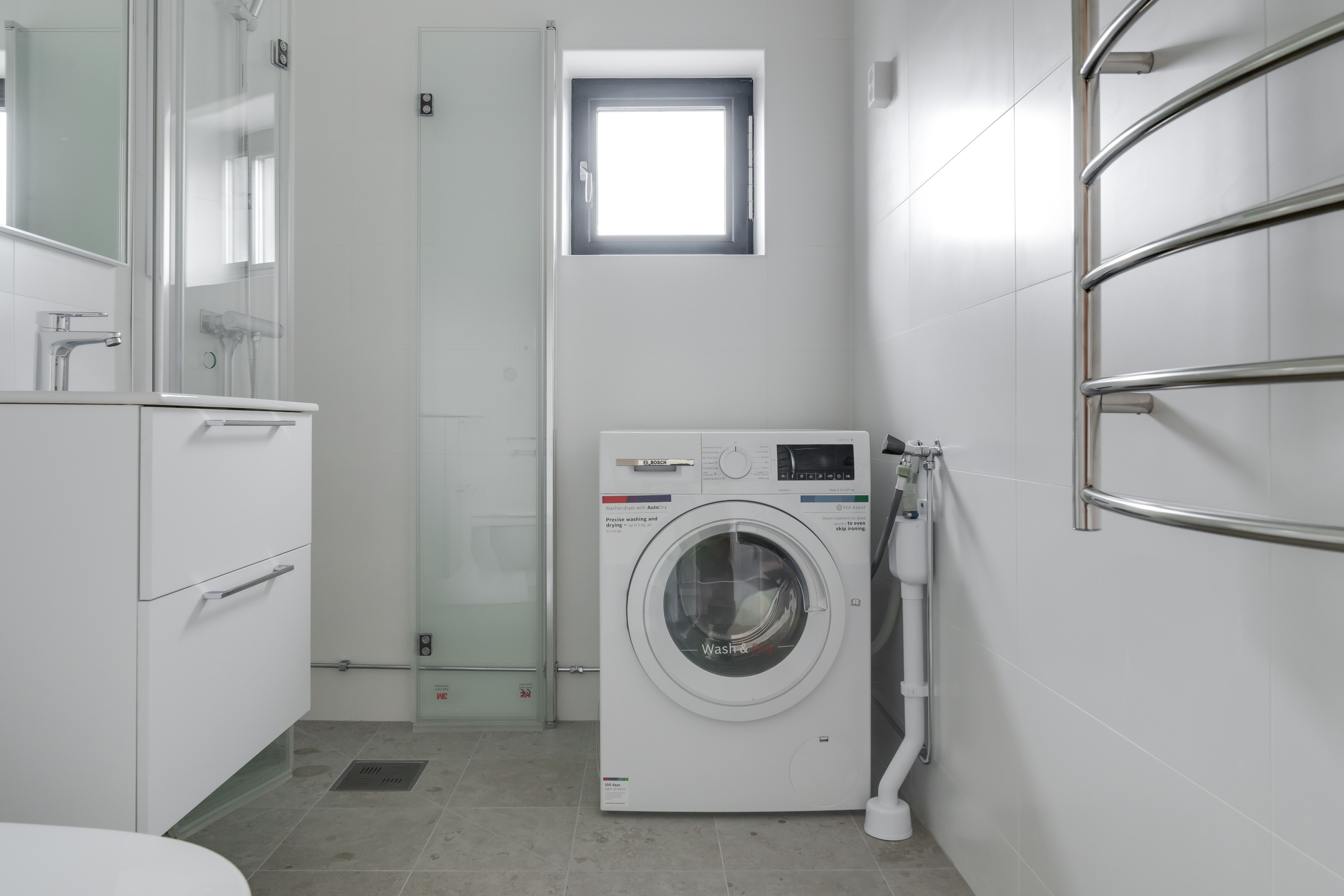 - Badrum: Torktumlare finns