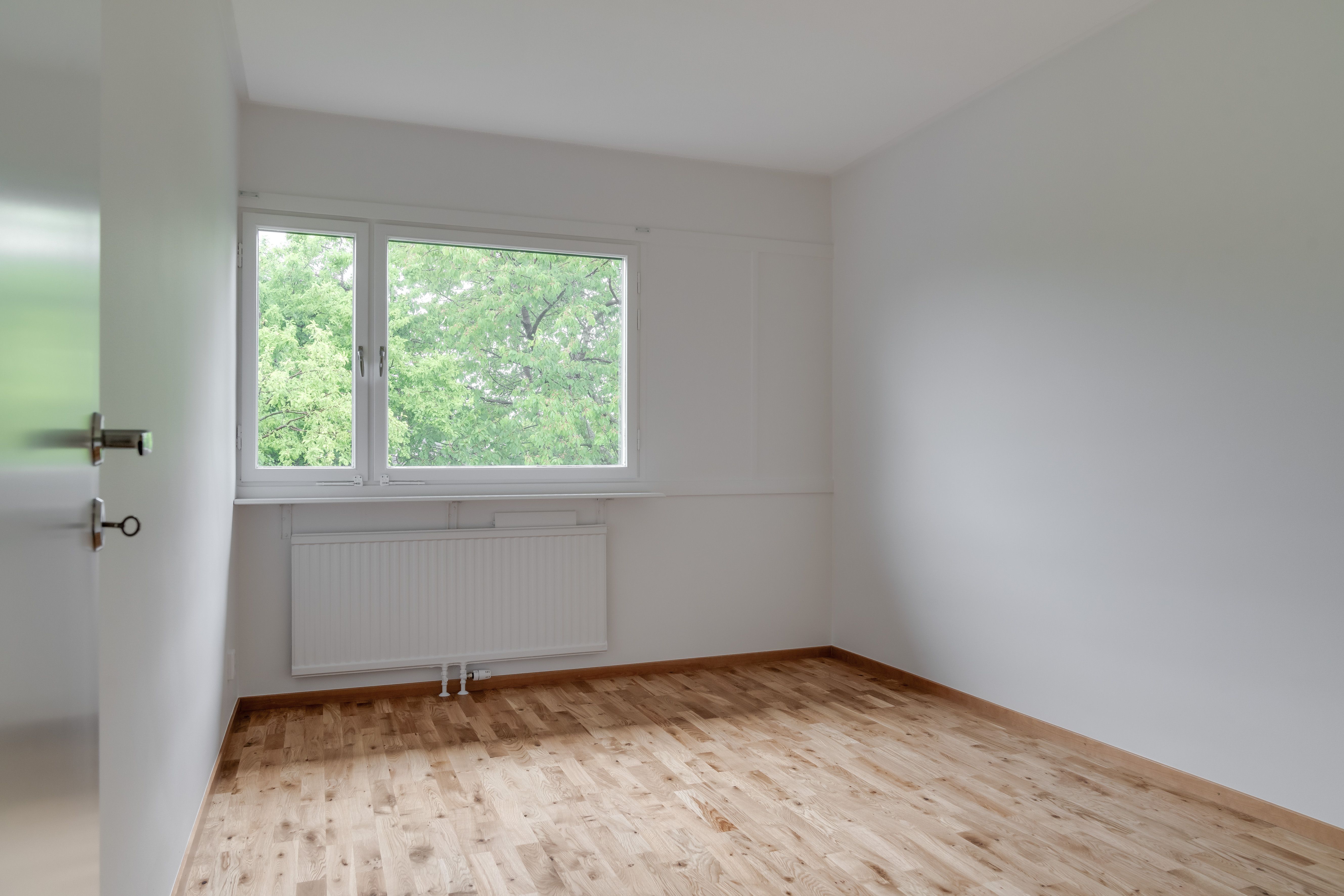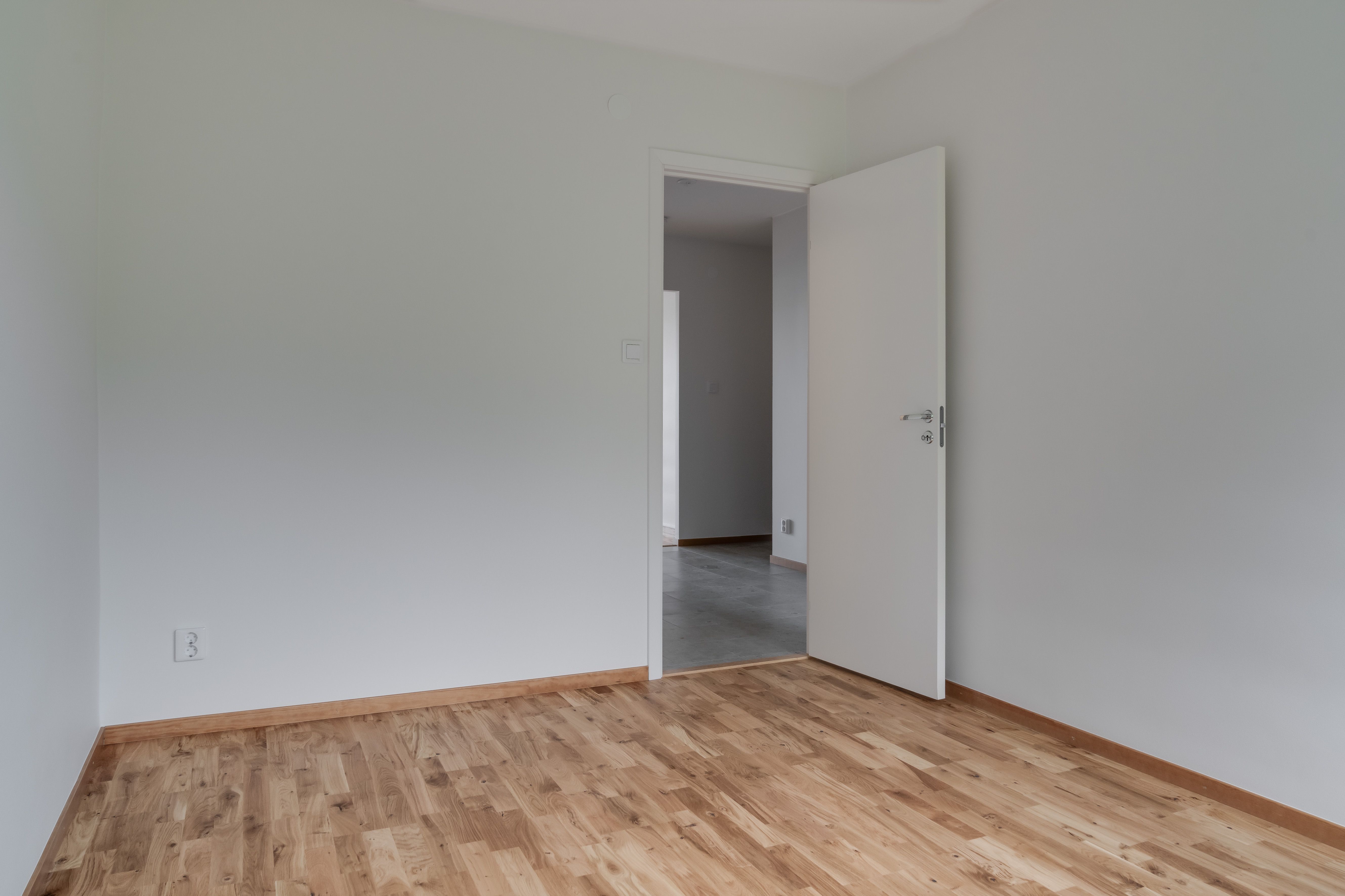 - Golv: Askparkettgolv i rum