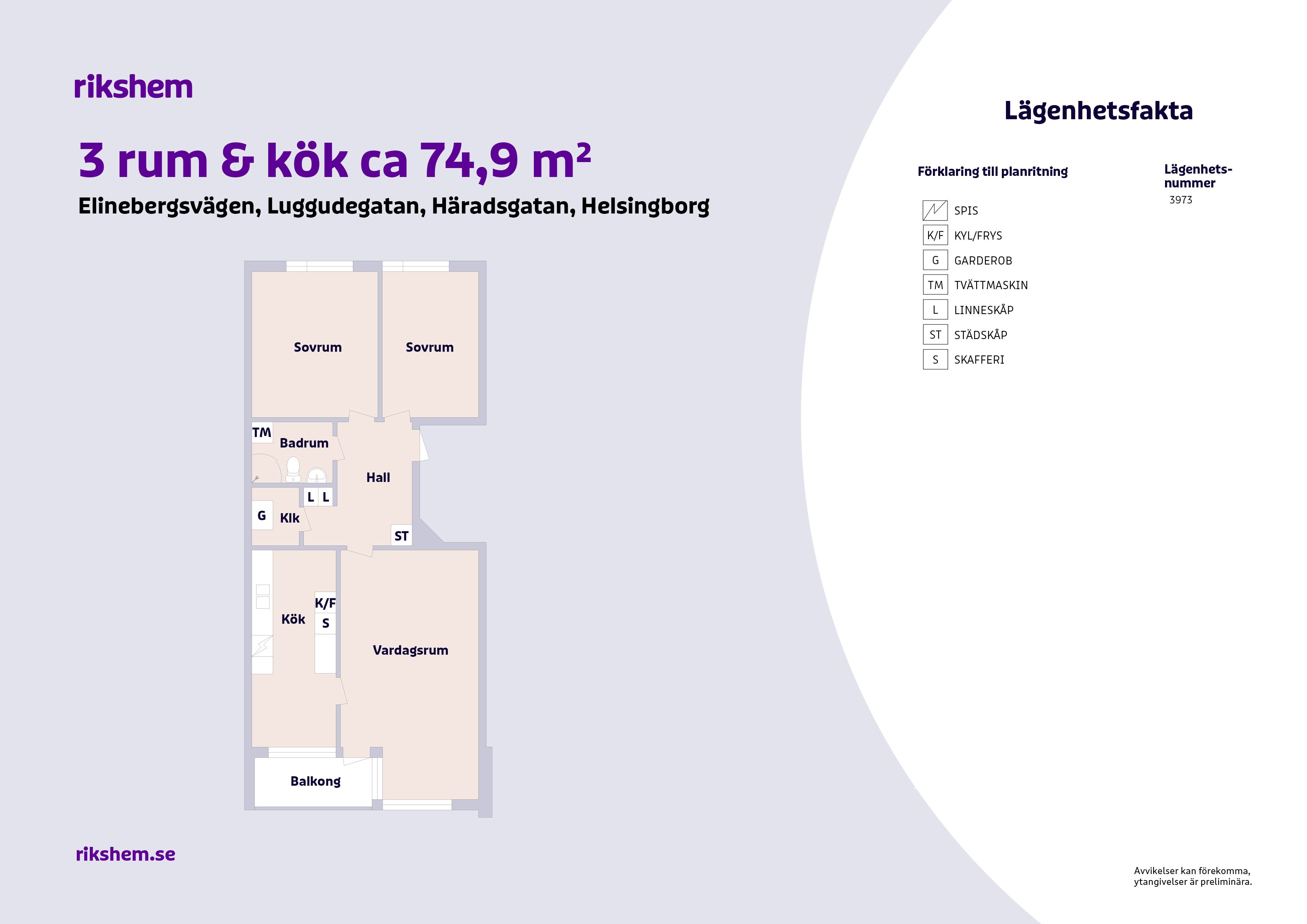 Rikshem reserverar sig mot eventuella fel eller avvikelser som kan förekomma i lägenhetsannonsen eller i planritningen.