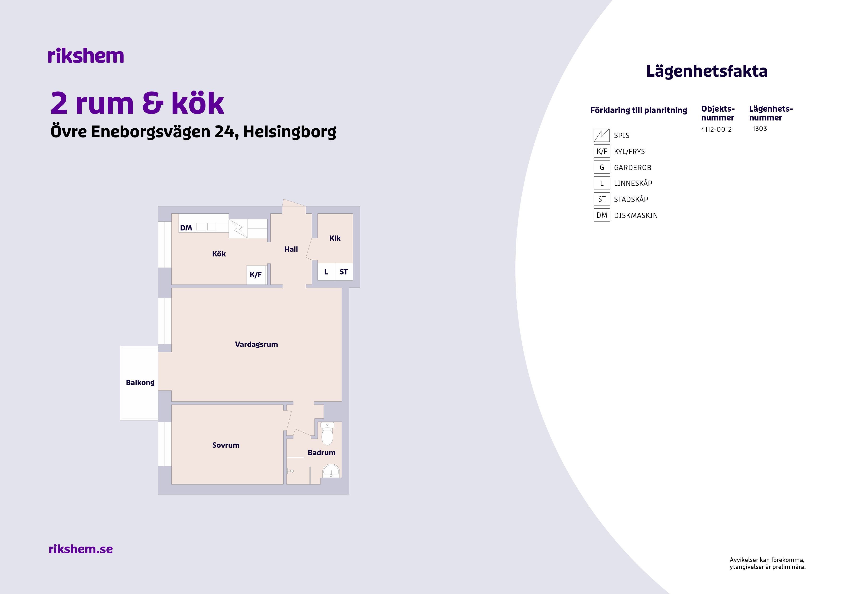 Rikshem reserverar sig mot eventuella fel eller avvikelser som kan förekomma i lägenhetsannonsen eller i planritningen.