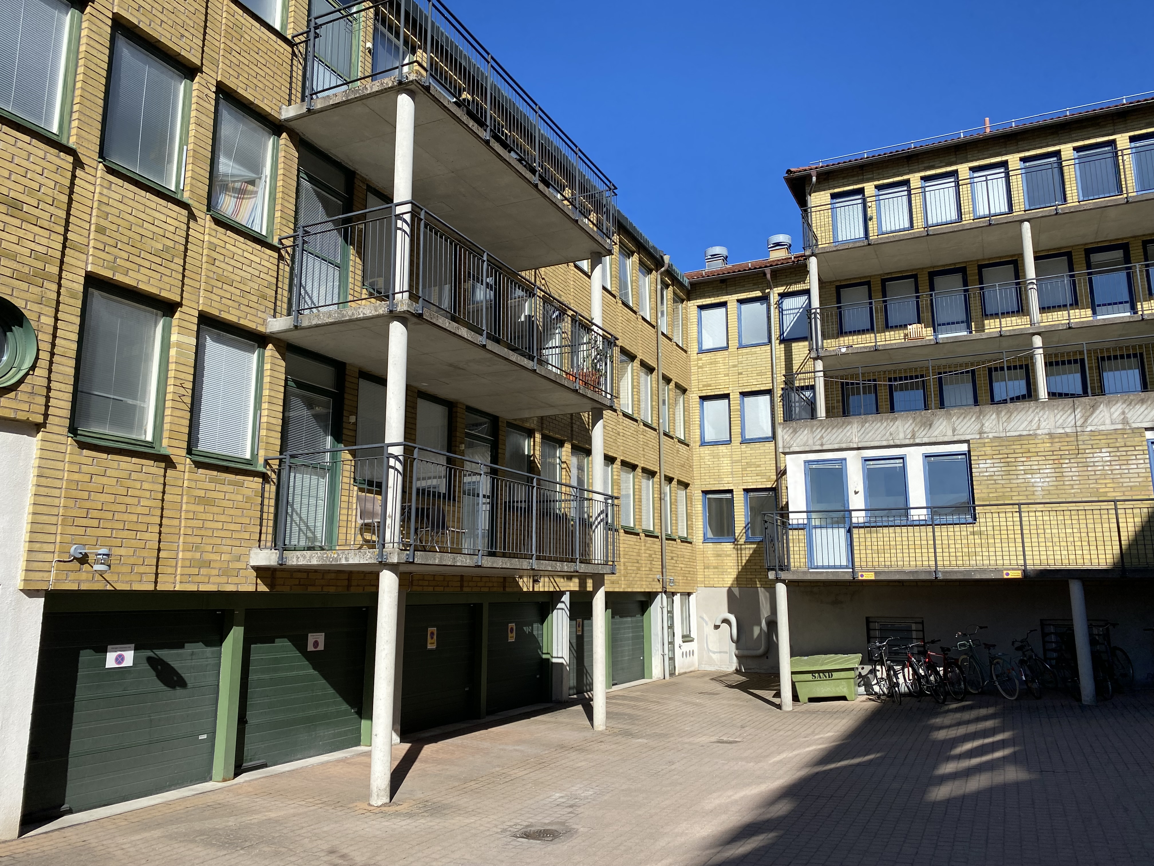Tvättstuga och miljöhus ligger på gården. Hiss finns från entréplan.